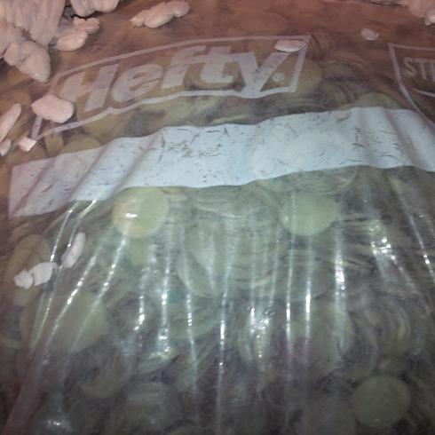 - If the coins are wet, place them in zip loc bags. A Hefty jumbo-sized strong-seal bag fits perfectly into a large fixed-rate USPS box. Even if coins aren't wet, plastic bags help assure coins don't spill out of a box edge or seam ruptures. The picture (right) is an example of cavern coins we received in bags.